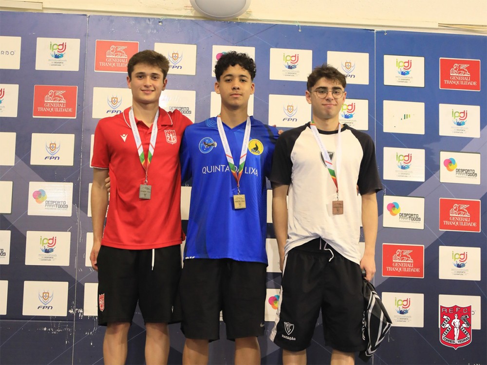 No Campeonato Nacional de Juvenis, que decorreu no Jamor de 4 a 7 de abril, o António Godinho brilhou nas pistas! Sagrou-se vice-campeão nacional nas provas de 50m Mariposa e 100m Mariposa.