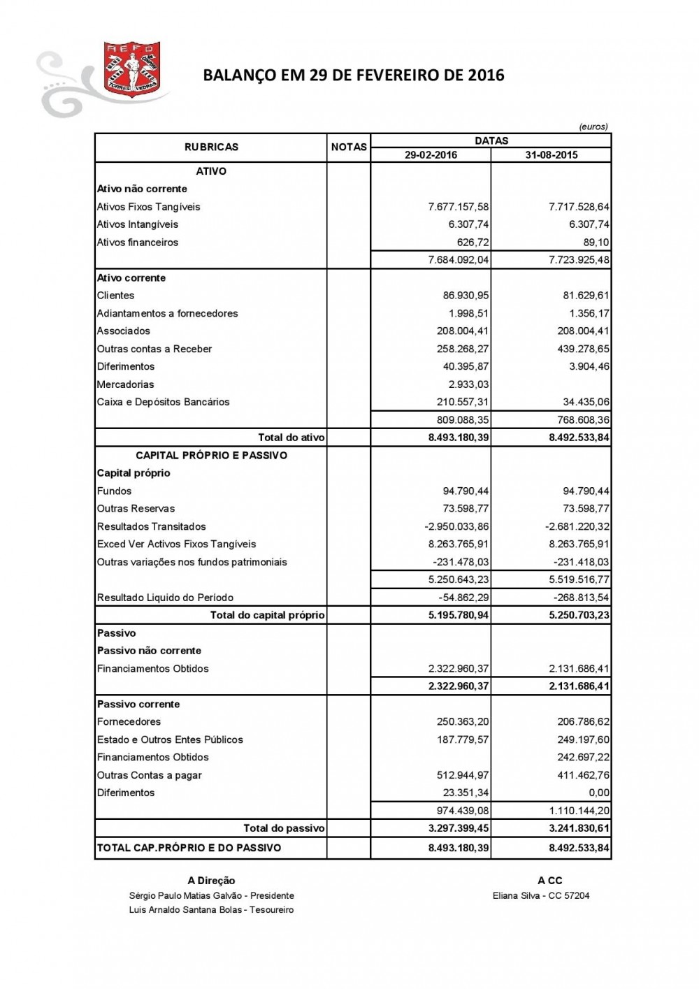 Balanço em 29 Fevereiro 2016