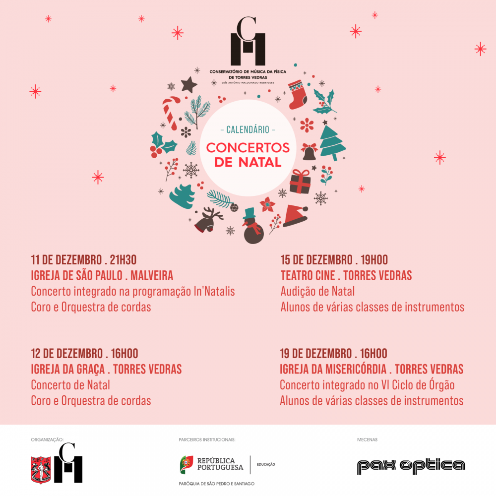 O Conservatório de Música da Física de Torres Vedras apresenta aqui o seu calendário de concertos para dezembro.