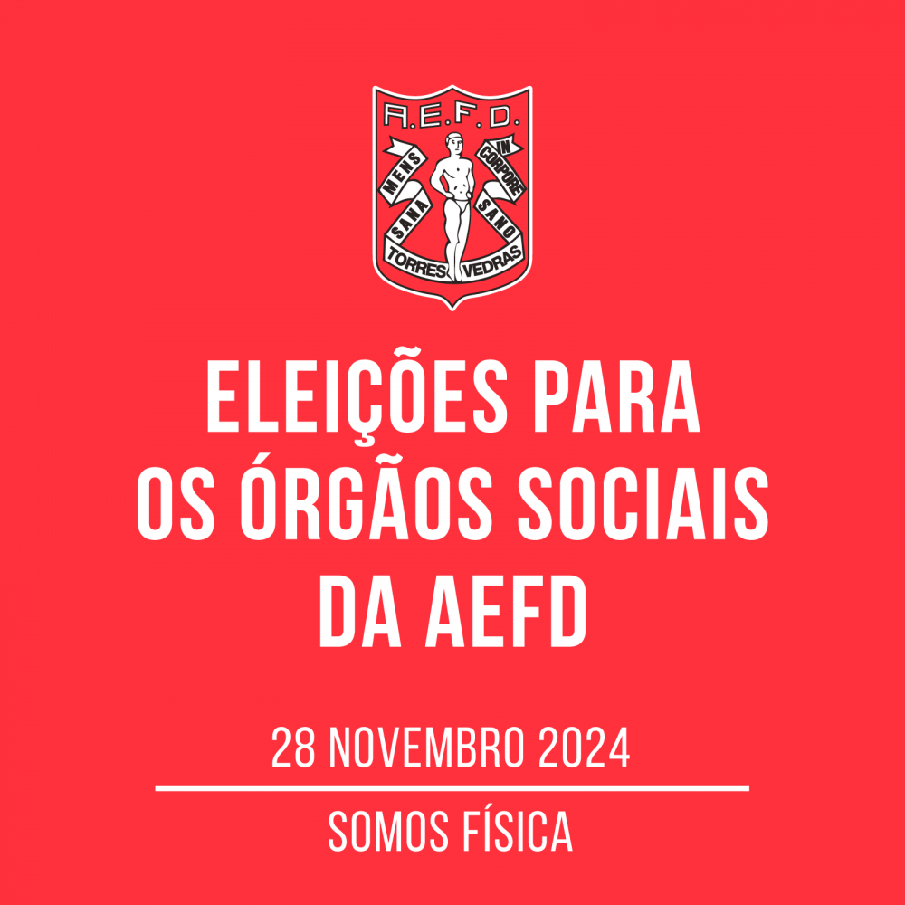 Em conformidade com o disposto no Art.º 33.º dos Estatutos, convoco os associados para a Assembleia Geral Ordinária da Associação de Educação Física e Desportiva de Torres Vedras, a realizar na sua sede social na praceta Calouste Gulbenkian, em Torres Vedras, Freguesia de Santa Maria, São Pedro e Matacães, concelho de Torres Vedras, no dia 28 de novembro de 2024, pelas 16 horas, com a seguinte ordem de trabalhos: