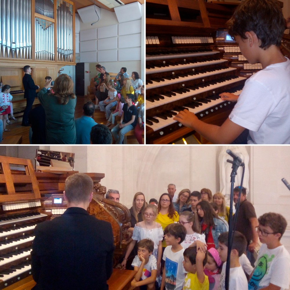 Sendo uma experiência marcante para todas estas crianças e jovens, que habitualmente têm aulas no órgão histórico Bento FONTANES da Igreja Misericórdia, os alunos tiveram a oportunidade de tocar e ouvir as explicações acerca de um dos maiores órgãos da península ibérica - o grande órgão "Mascioni" da Basílica de Nossa Senhora do Rosário de Fátima, dotado de mais de 5000 tubos, 90 registos e cinco teclados.