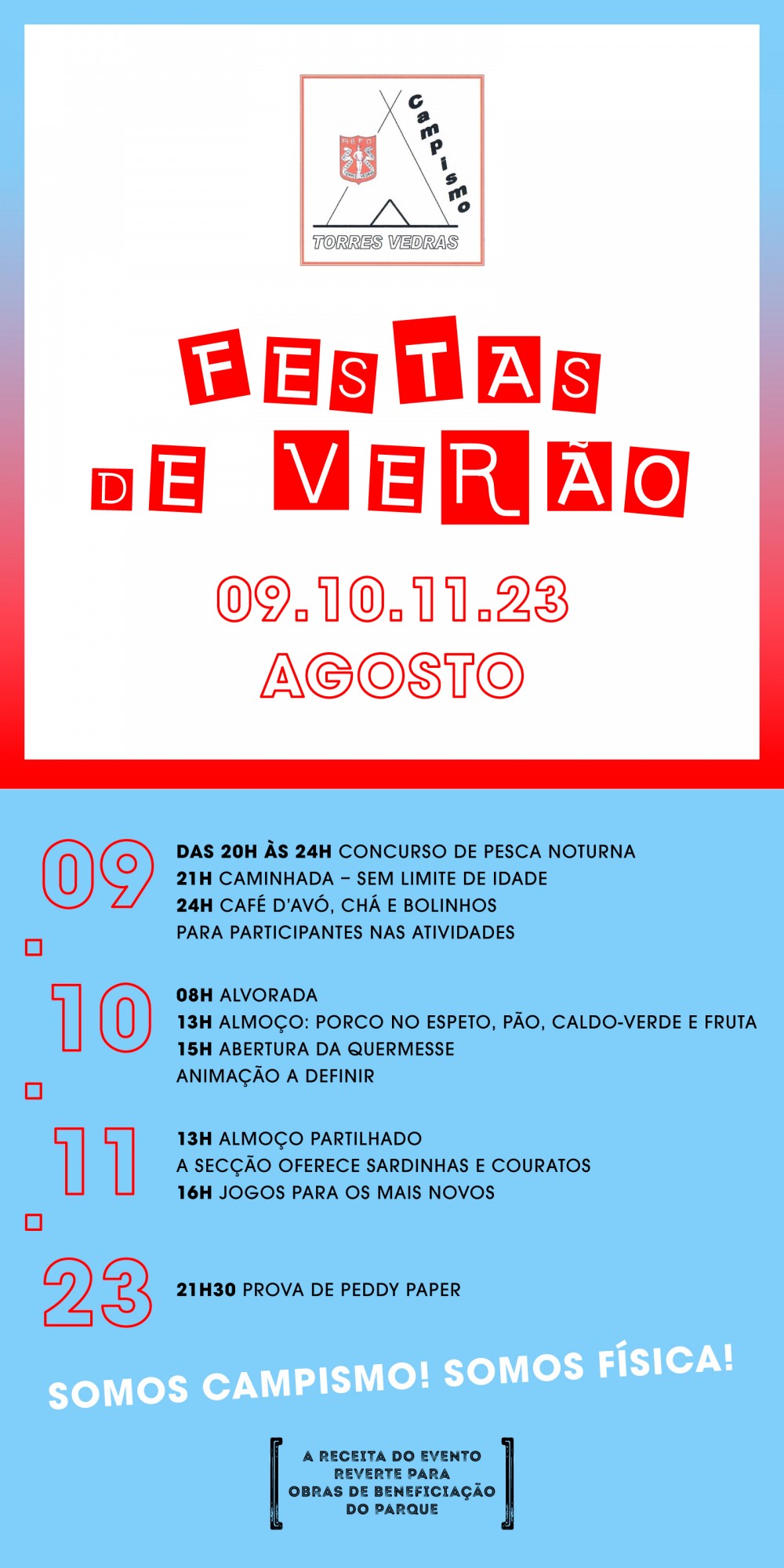 Não percam as atividades nos dias 9, 10, 11 e 23 de agosto. Desde o concurso de pesca noturno, o almoço partilhado e ainda um peddy papper!