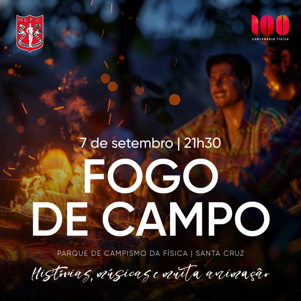 No próximo sábado, dia 7 de setembro, o Parque de Campismo da Física apresenta a atividade "Fogo de Campo", inserida nas celebrações do centenário da Associação.