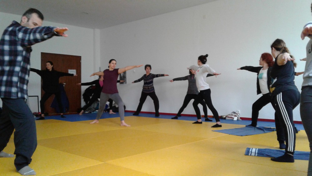 Sob orientação da Prof. Eduarda Maia, os presentes tiveram oportunidade de “carregar baterias”, numa aula onde dominou a tranquilidade, equilíbrio e a calma que só o Yoga transmite.