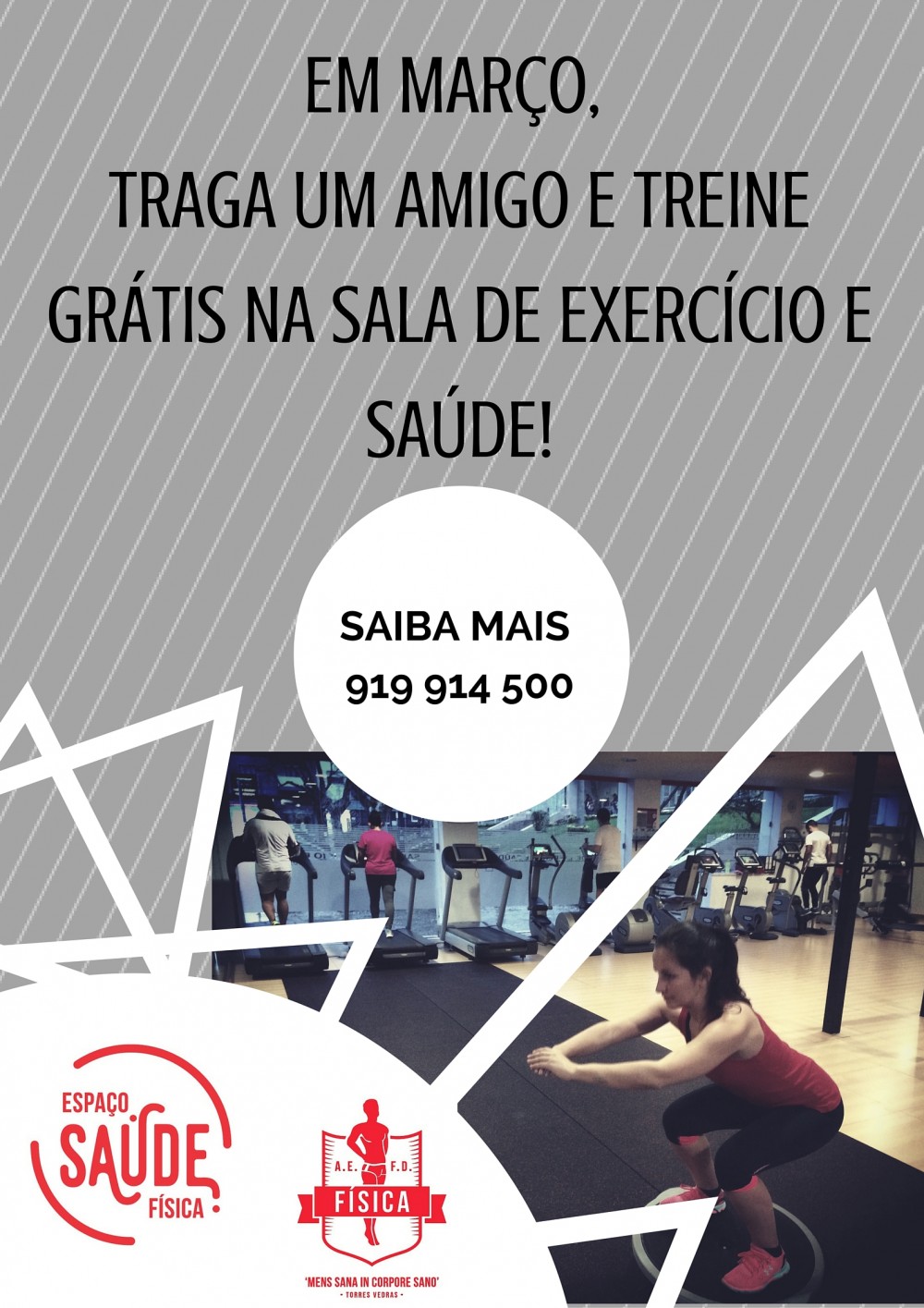 Traga 1 Amigo e treine 1 mês grátis!!!O Amigo ganha a Inscrição!Mais informações: espacosaudefisica@fisicatvedras.pt