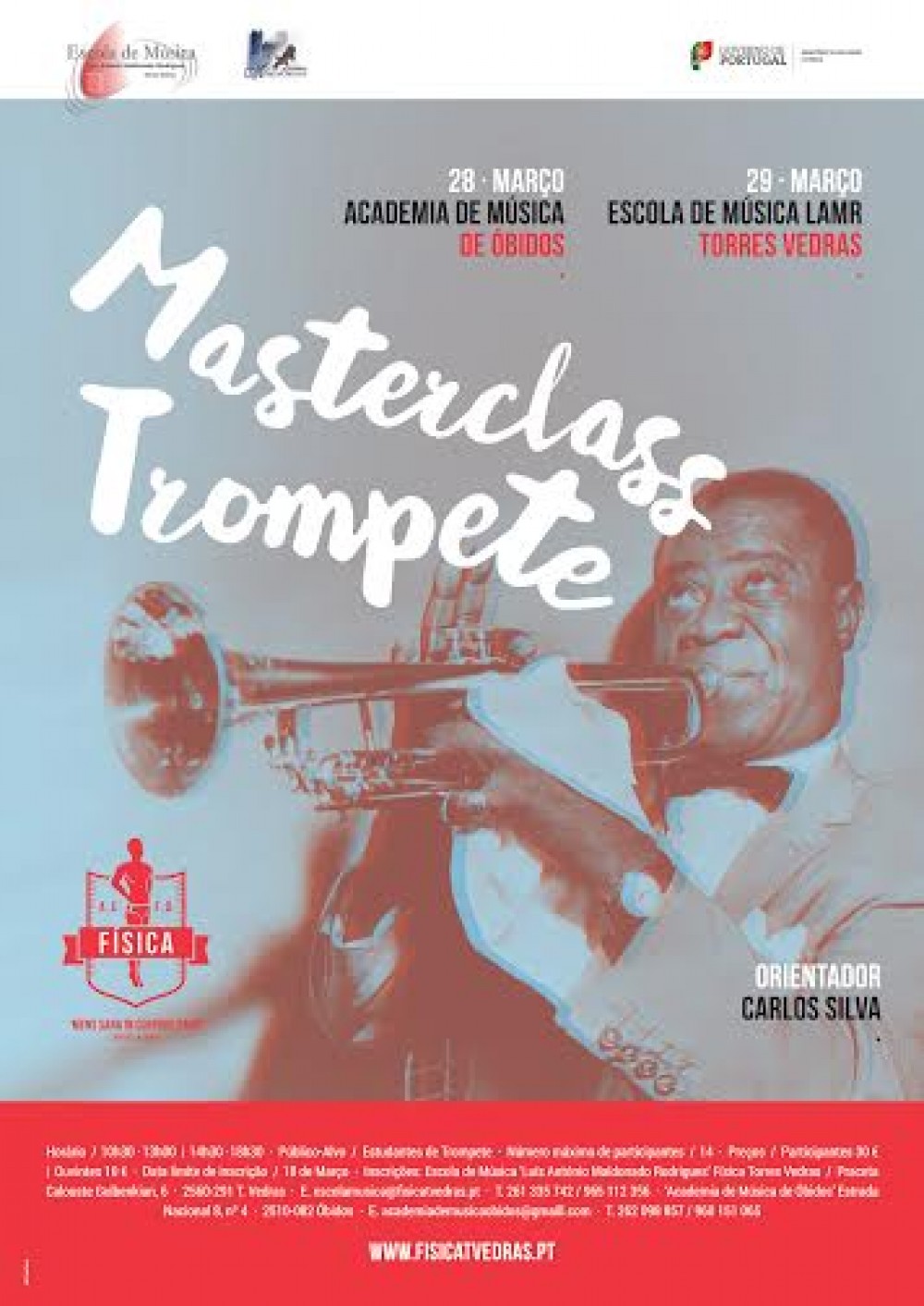 A Escola de Música da Física"Luís António Maldonado Rodrigues" e a Academia de Música de Óbidos, vão levar a efeito nos dias 28 e 29 de Março uma "Masterclass de Trompete".