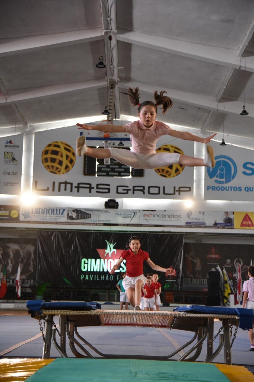 O TeamGym é uma especialidade da Ginástica que abrange: Esquema de Grupo, Saltos de Mini-Trampolim e Tumbling.