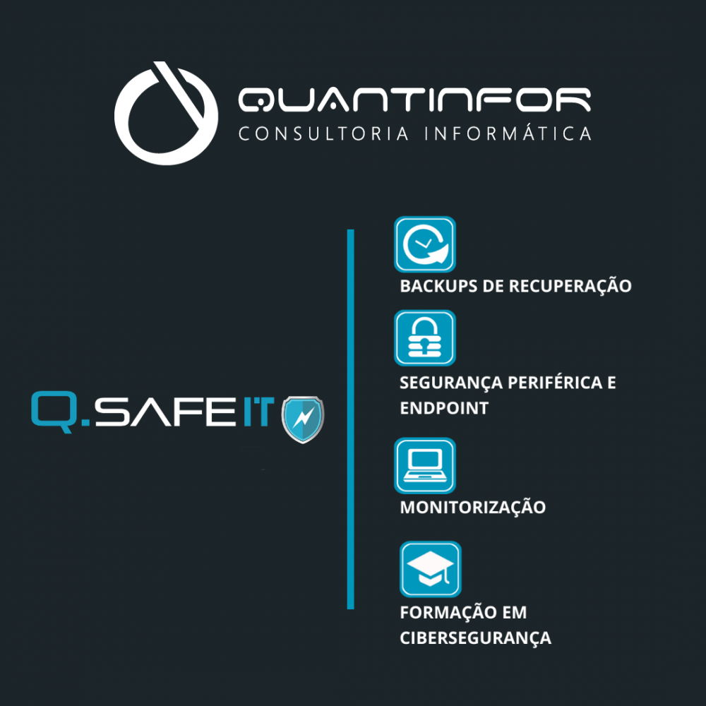 A Quantinfor tem a solução para si. Um produto completo que engloba 4 pilares que acreditam serem fundamentais para o seu sucesso: o Q.Safe It.