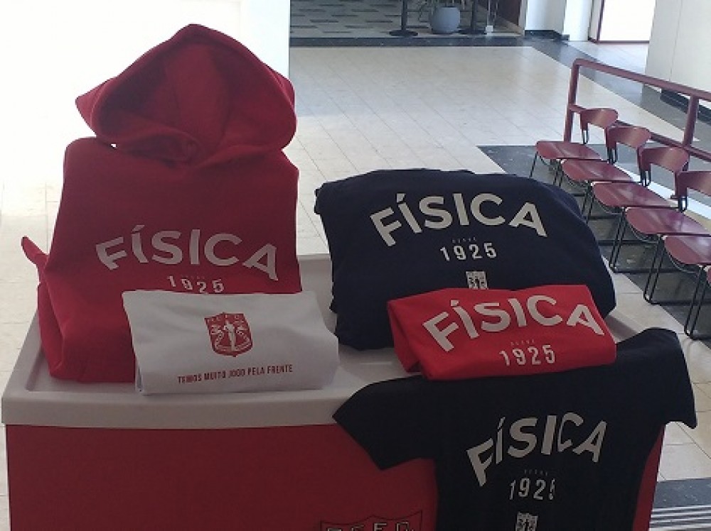As sweats e t-shirts da Física estão à venda.Vários tamanhos e cores para vestir a roupa do nosso clube.Somos Física desde 1925!