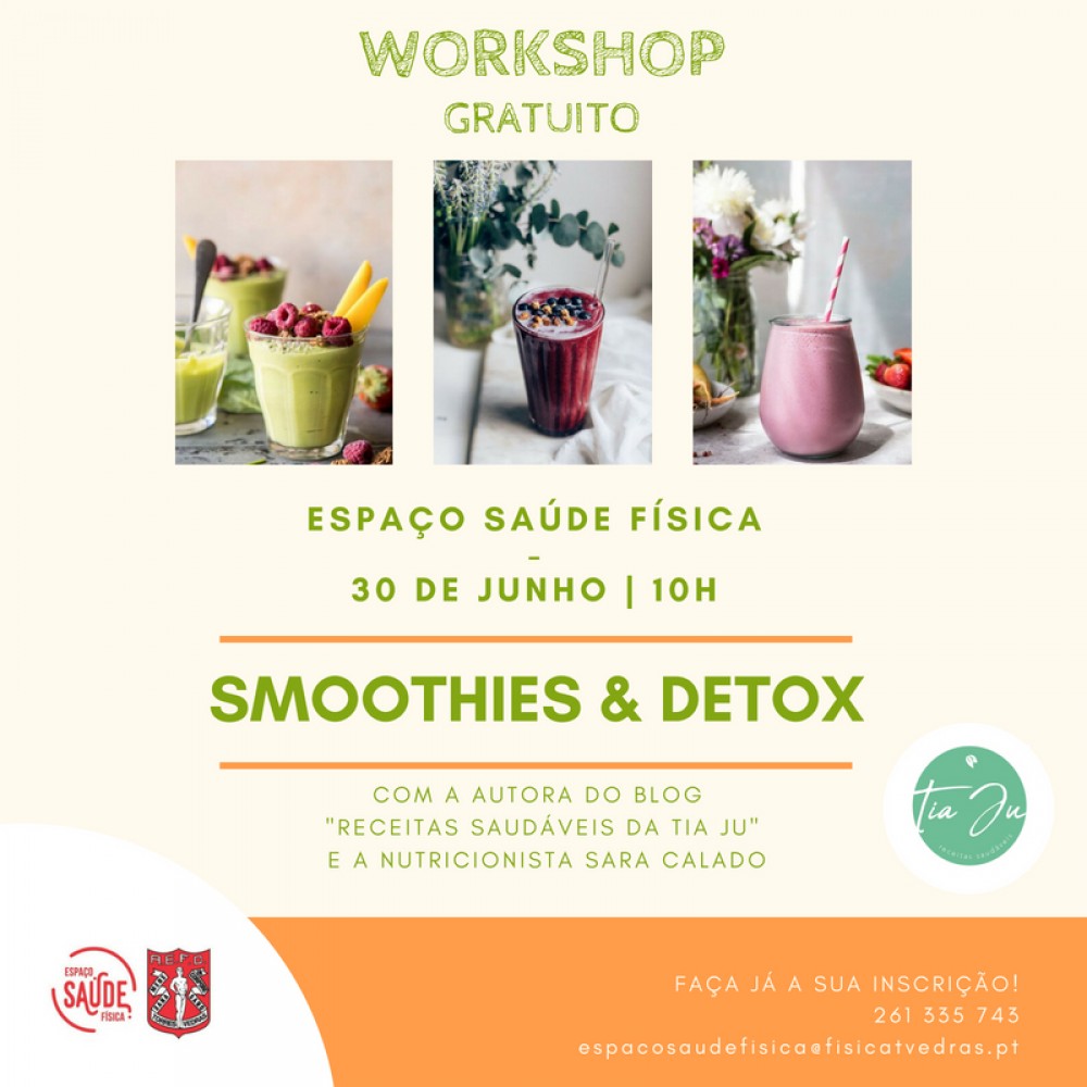 No dia 30 de junho pelas 10h irá realizar-se um Workshop gratuito de Smoothies e Detox. O workshop irá contar com a presença da autora do Blog "receitas Saudaveis da Tia Ju" e com a Nutricionista Estágiatia Sara Calado.
