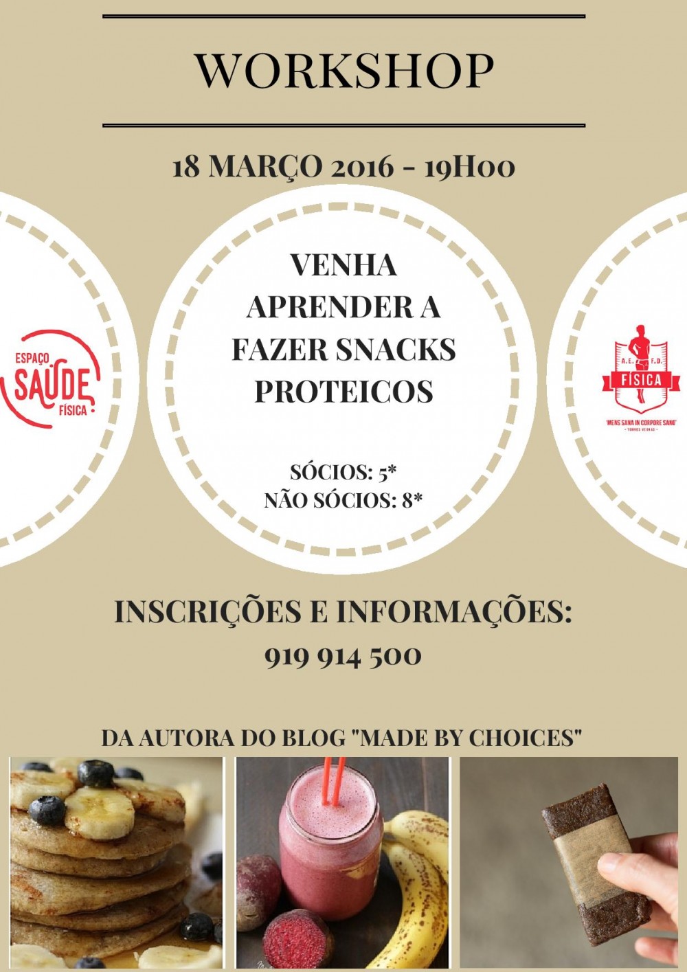 Esta sexta-feira dia 18, o Espaço Saúde organiza um Workshop de "Receitas Saudáveis" a partir das 19h00.